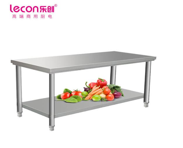 乐创 lecon 双层平板工作台 304型1.8*0.8米厨房操作台面不锈钢层架 LC-J-BG02